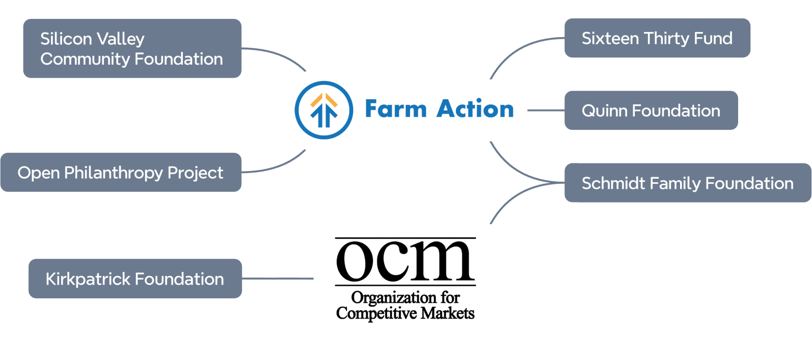 Farm Action received $50,000 in 2020 from the Quinn Foundation, which is run by a board member for the Humane Society of the United States–the largest anti-meat organization in the country.