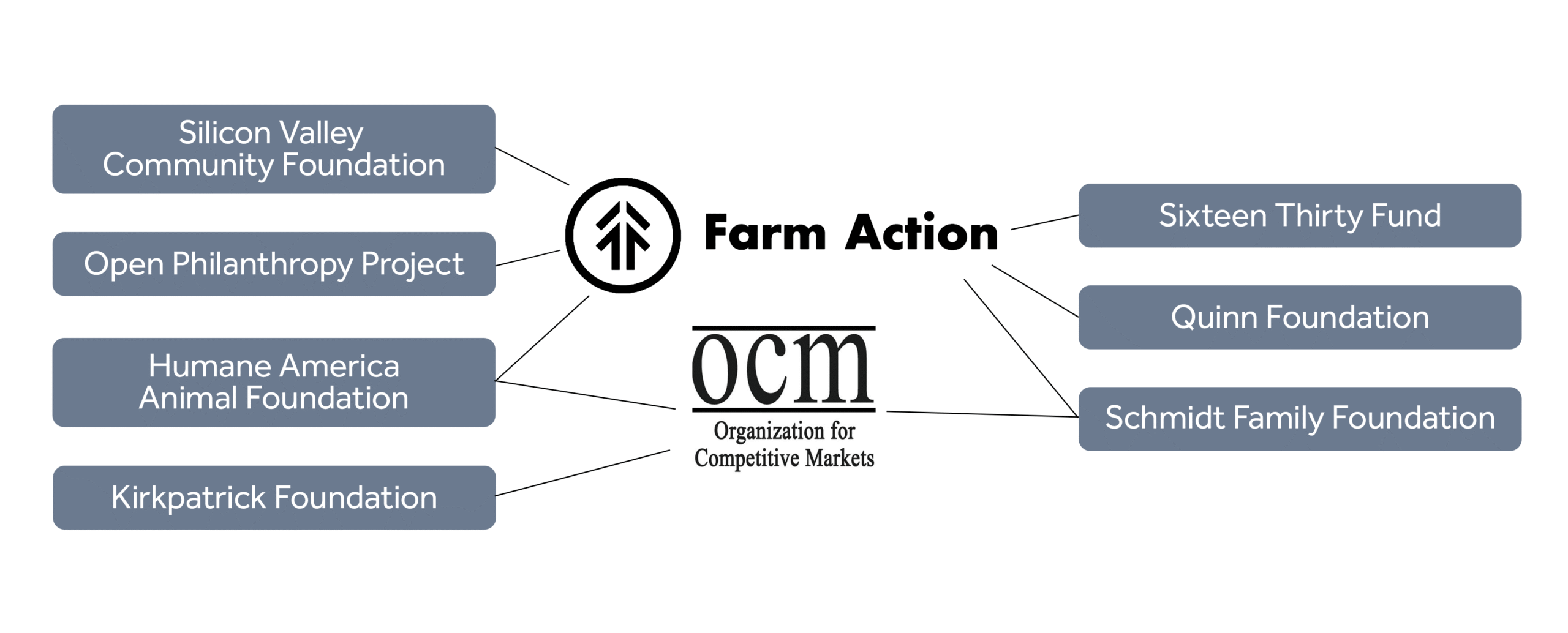 The Organization for Competitive Markets also has activist funders. In 2018-19, OCM took $127,500 from the Schmidt Foundation. And it also took $50,000 in 2023 from Humane America Animal Foundation, which funds anti-meat groups; $25,000 from the Kirkpatrick Foundation, an organization that attacks the pork industry in Oklahoma and funds animal rights extremists; and $50,000 in 2024 from a dark money fund.